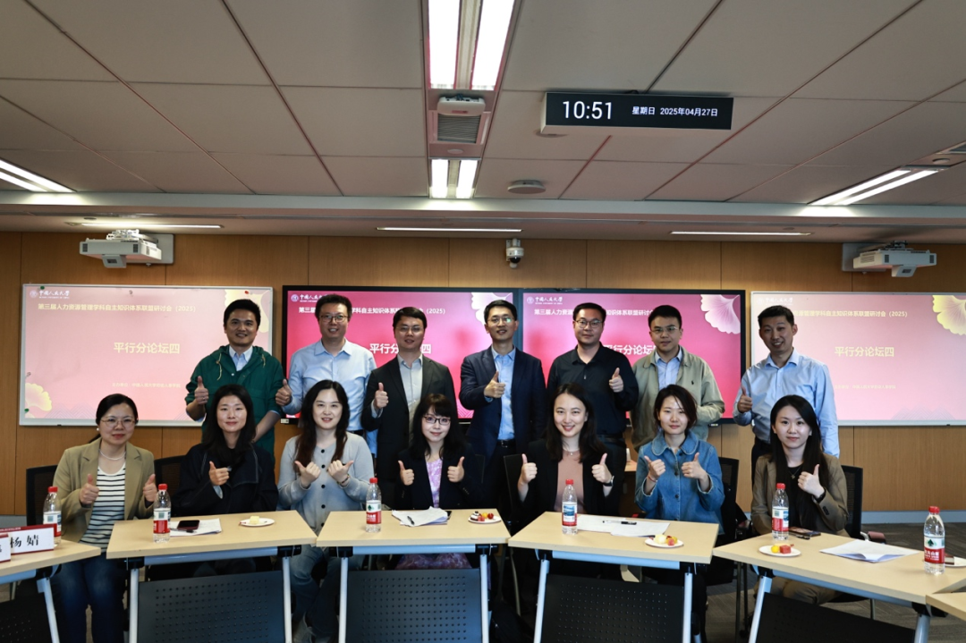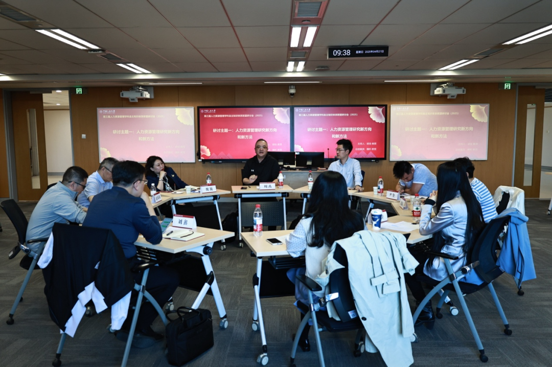 分论坛一在立德楼1002会议室召开,中国劳动关系学院张才明教授、首都经济贸易大学苗仁涛教授、太阳成集团tyc234cc徐世勇教授、太阳成集团tyc234cc刘颖教授、山东大学刘德鹏教授、华北电力大学刘琳副教授、武汉理工大学谢宝国教授、太阳成集团tyc234cc毛凯贤讲师、北京林业大学宋洪峰副教授、中国农业大学王甫希副教授、北京理工大学王瀛副研究员等11位专家学者围绕“人力资源管理资政与社会服务”和“新文科背景下的人力资源管理团队建设与发展”两个研讨主题进行深入交流讨论。
