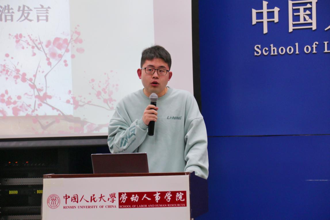 组织部员工骨干负责人隋意首先回顾了组织部本学期的工作情况,从基础团务、奖助学金申报到部门建设培训,组织部一直默默奉献,为学院团学工作贡献力量,并且也取得了丰硕的工作成果。同时,她强调了“劳人组织,坚如磐石”的部门宗旨,希望组织部的同学们能坚守初心,持续助力学院团学工作发展。最后,她为院会送上了真诚的祝福,并向大家了表达了真挚的感谢。