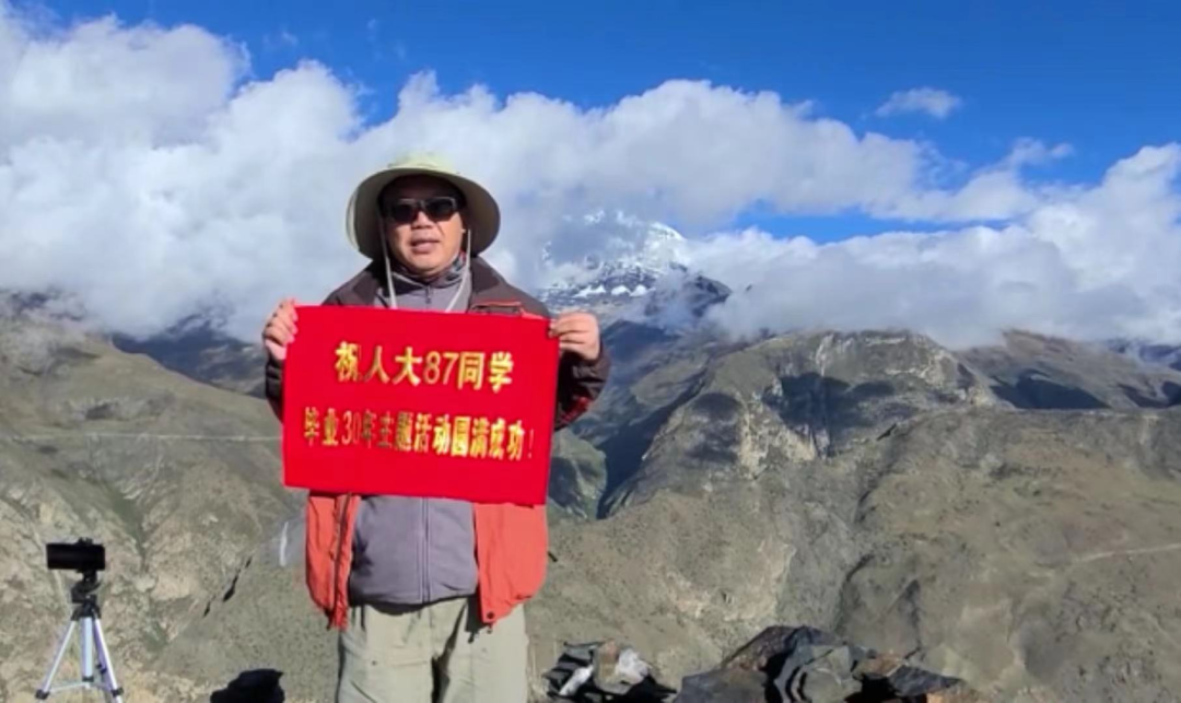太阳成集团tyc234cc劳动经济专业1987级员工张斌将在西藏徒步旅行的影像资料以视频形式发送到现场,在海拔6785米的西藏高原祝福老师们和同学们“扎西德勒”。
