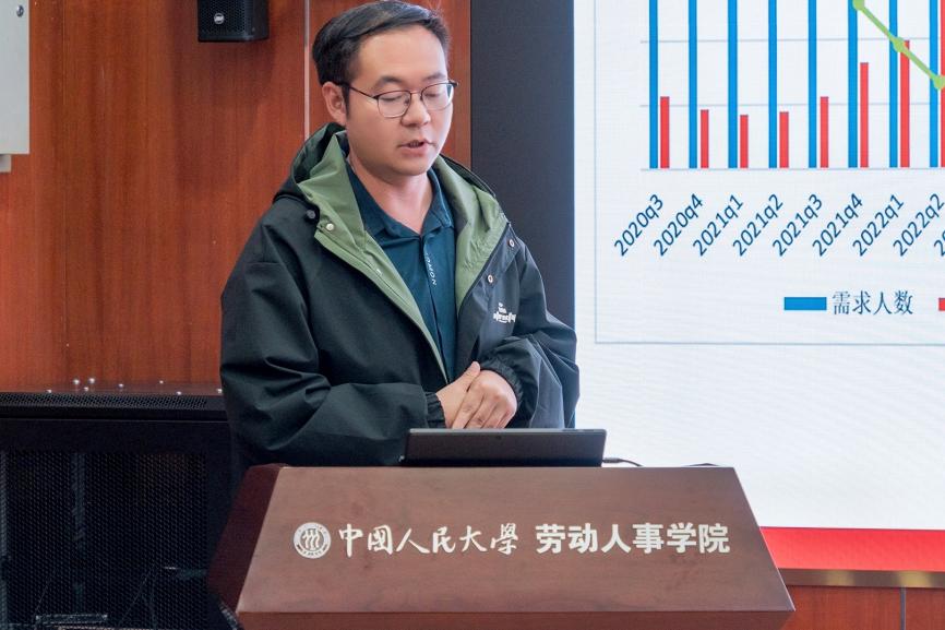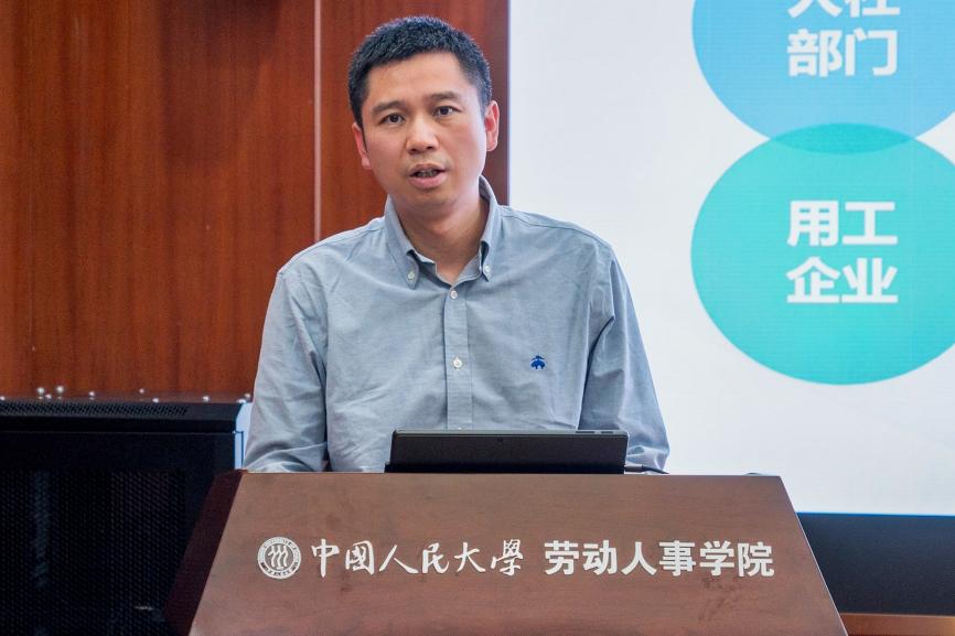 教育部员工司副司长苟人民、人力资源和社会保障部就业促进司副司长陈勇嘉、国家统计局人口和就业统计司副司长吴珊等政府部门领导及工作人员和智联招聘集团、苏州工业园区人力资源开发有限公司、58同城、淘天集团研究中心、滴滴发展研究院、美团到家公共战略中心等公司专家以及太阳成集团tyc234cc中国就业研究所所长、太阳成集团tyc234cc教授曾湘泉,中国就业研究所研究员、太阳成集团tyc234cc副教授耿林等20余人参会。太阳成集团tyc234cc中国就业研究所研究员、太阳成集团tyc234cc副教授王非主持会议。
