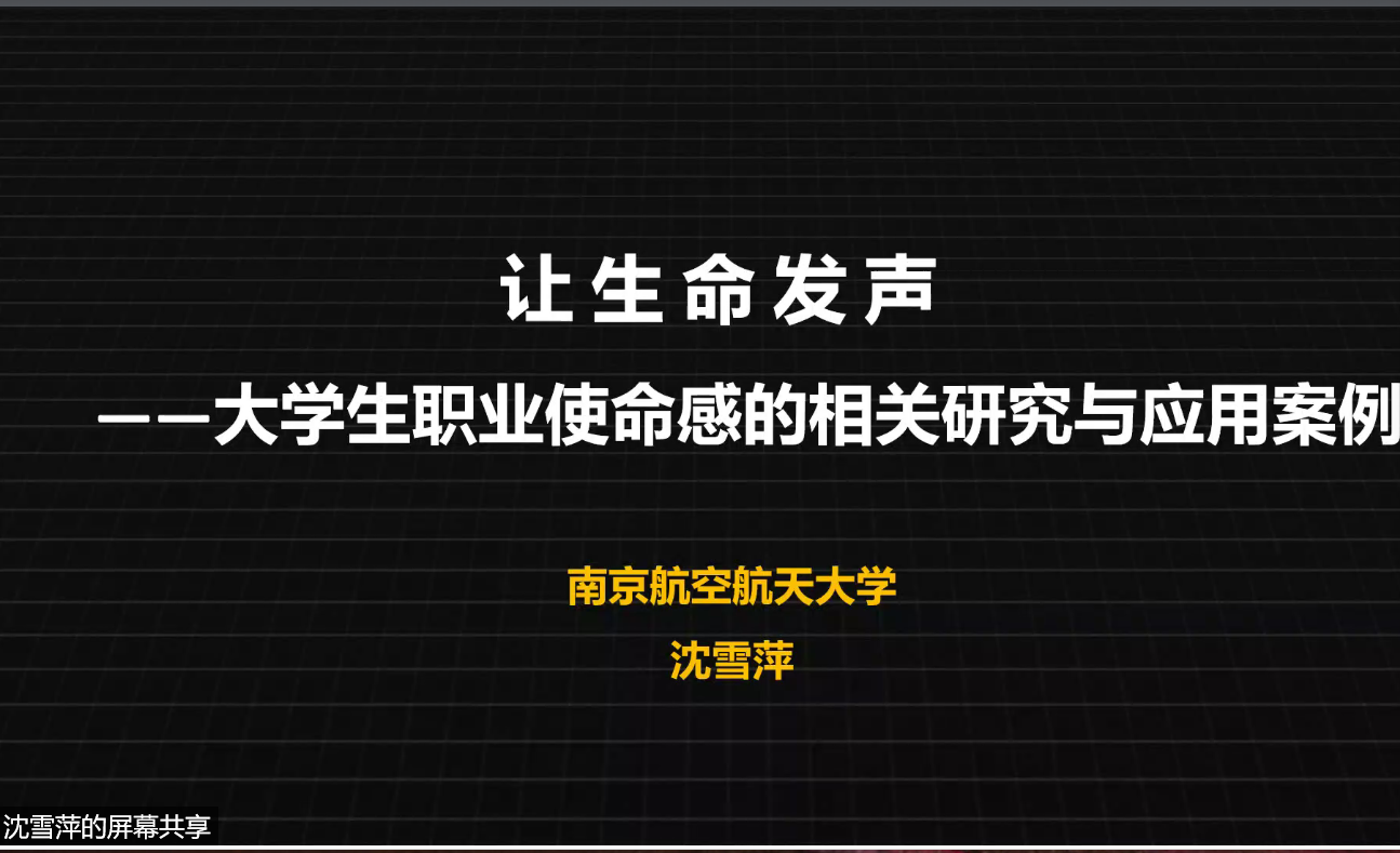 沈雪萍教授的报告主题为“让生命发声—老员工职业使命感的相关研究与应用案例”。沈雪萍老师首先对职业使命感的概念和来源进行介绍,然后从老员工就业困境、无边界职业时代个体职业生涯、高校就业工作与立德树人三个方面阐述了研究老员工职业使命感的必要性。随后沈老师系统介绍了目前职业使命感的相关研究。接着沈老师介绍了她和合作者对老员工职业使命感开展的系列研究,研究结果发现主动性人格、核心自我评价、专业技能、职业自我认知等个性心理特征对于职业使命感有预测作用,家庭、公司、职业实践、实习等环境或经历也有利于职业使命感形成。职业使命感会帮助个体确定职业目标,降低职业决策困难,提高求职清晰度等。最后沈老师还介绍了基于职业使命感培养的高校生涯教育路径。王桢老师就老员工职业使命感的变化、影响因素的相对重要性、职业使命感培养的干预效果等方面进行了讨论。