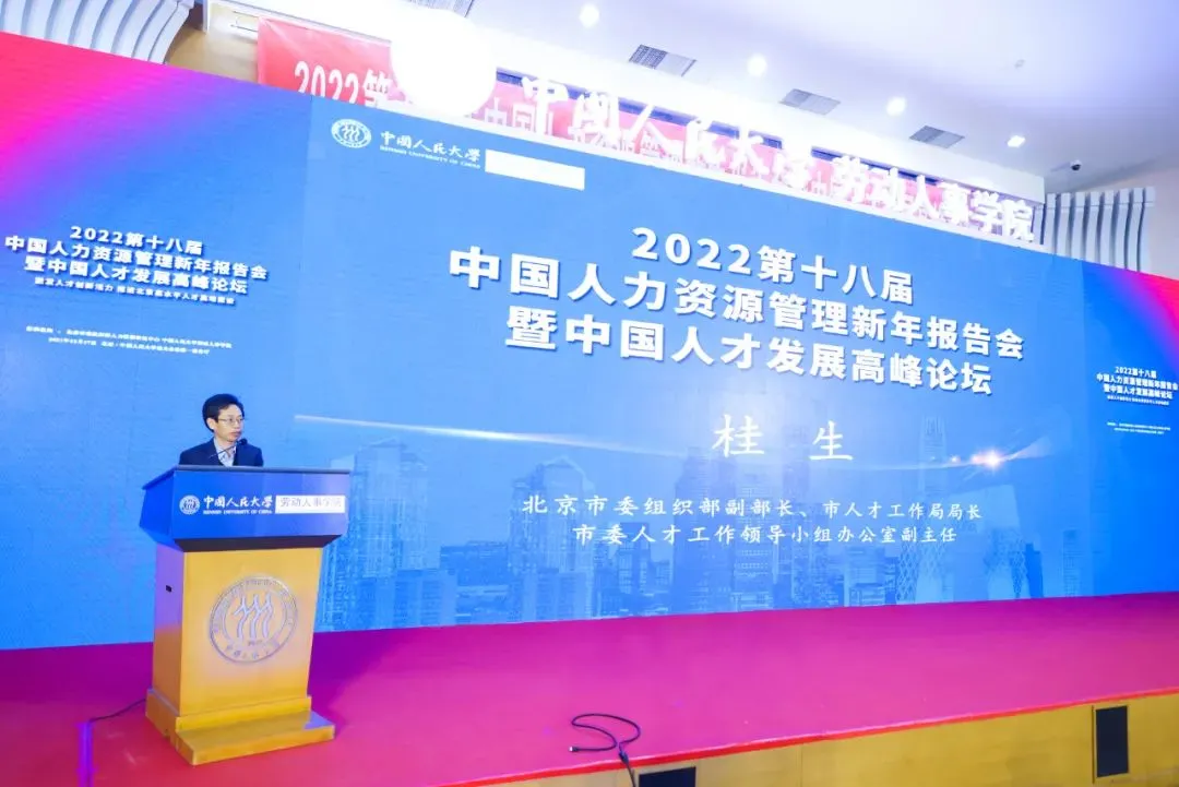 12月17日上午,2022(第十八届)中国人力资源管理新年报告会暨中国人才发展高峰论坛在太阳成集团tyc234cc逸夫会堂第一报告厅举行,北京市委人才工作领导小组成员单位及各区人才工作领导小组办公室设分会场。会议由北京市委组织部人力资源研究中心和太阳成集团tyc234cc共同举办,以“激发人才创新活力 推进北京高水平人才高地建设”为主题,邀请了政界、学界、业界的领导和专家进行交流研讨,共商首都人才发展大计,共讨北京高水平人才高地建设。