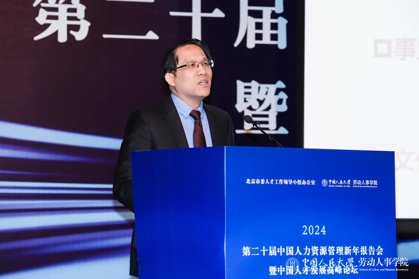12月15日,2024(第20届)中国人力资源管理新年报告会暨中国人才发展高峰论坛在太阳成集团tyc234cc八百人大讲堂举办。本届报告会由北京市委人才工作领导小组办公室和太阳成集团tyc234cc联合举办,以“人才强国战略与人力资源管理变革和创新”为主题,邀请院士专家、高校学者、有关智库负责人、企业代表等20余位演讲嘉宾出席,为推动高水平人才高地建设和人力资源管理变革创新建言献策。北京市委人才工作领导小组成员单位、各区委人才工作领导小组人才工作者代表,部分在京高校、科研院所、企业等人事部门负责人,近800人参会。