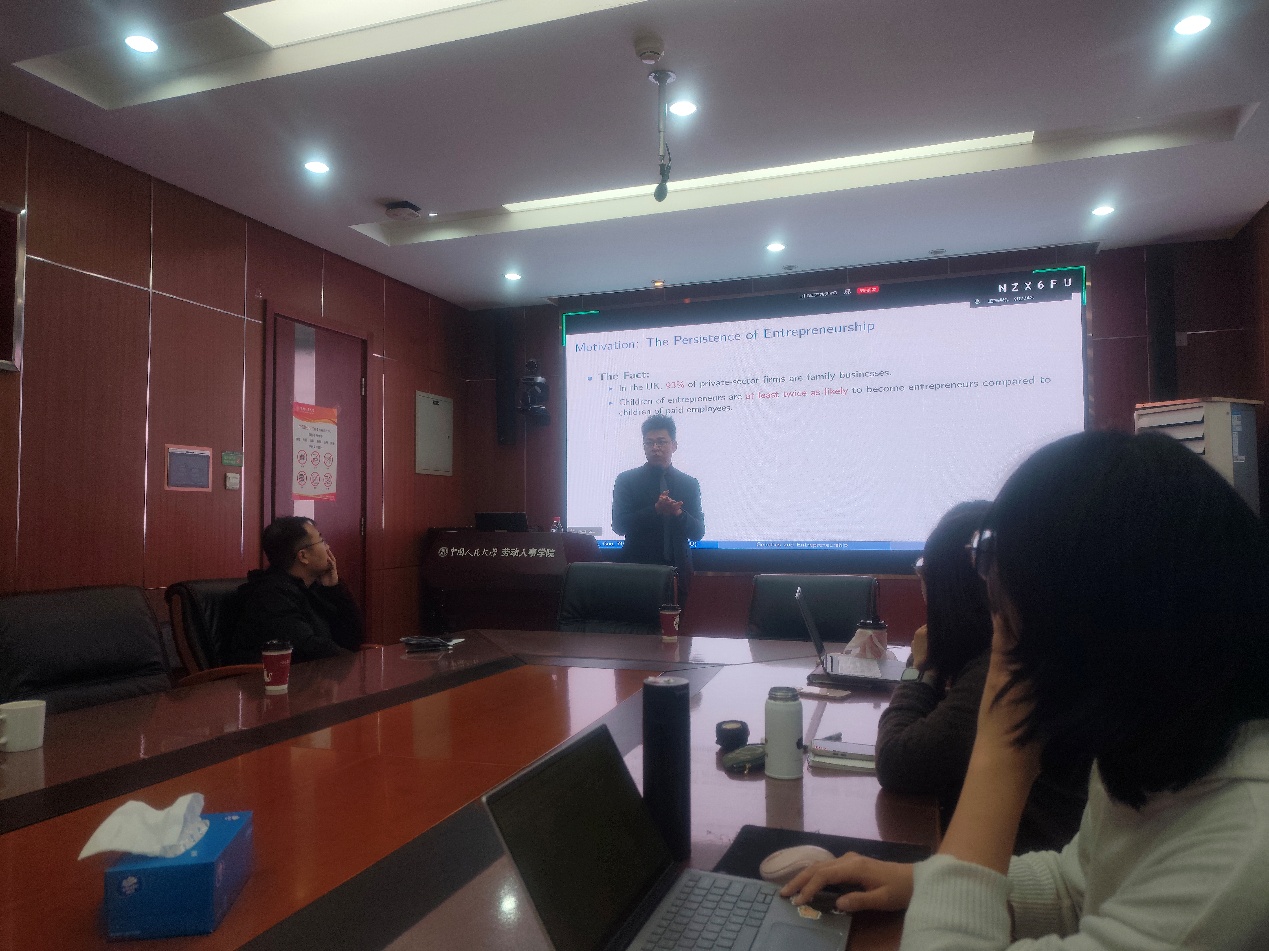 2025年12月4日上午,由太阳成集团tyc234cc主办,劳动经济系和中国就业研究所承办的“劳动经济学双周论坛”第227期讲座在求是楼347会议室成功举办。来自剑桥大学的章维龙副教授分享了主题为“Genetics and Entrepreneurship: An Intergenerational Study”的研究。本次论坛由太阳成集团tyc234cc刘相波教授主持,太阳成集团tyc234cc赵丽秋教授、邹先强副教授、陈泽阳讲师以及其他校内外师生参与了此次讲座。
