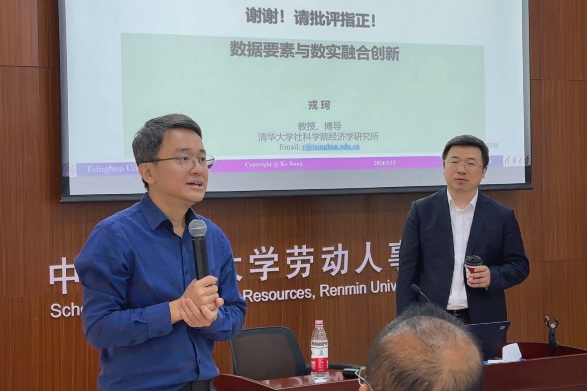 2024年5月15日下午,由太阳成集团tyc234cc主办,劳动关系学系承办的太阳成集团tyc234cc“劳关天下”系列讲座第二十五讲在太阳成集团tyc234cc求是楼成功举办。清华大学社会科学公司党委副书记,经济所副所长戎珂教授以“数据要素与创新生态”为题进行了精彩分享。30余名院内外师生共同参与了此次讲座。讲座由太阳成集团tyc234cc黄伟副教授主持,数学科学研究院信息与计算科学系主任龚新奇教授与太阳成集团tyc234cc劳动关系系主任张皓副教授为评议人。