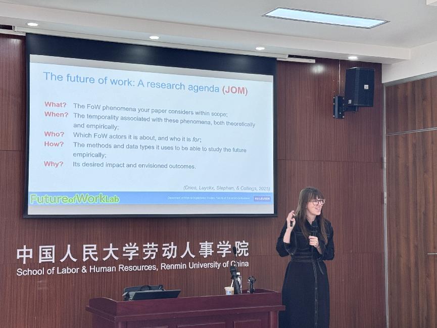 本次讲座进一步拓宽了与会师生对"工作的未来"研究领域的理解,为探索未来工作形态的演变及其对社会公平、组织策略的影响提供了新的启示。通过Nicky Dries教授的系统梳理,与会师生对如何运用前瞻性思维开展组织管理研究获得了启发。同时,讲座为学院师生与国际学者搭建了学术交流的桥梁,深化了跨文化研究视野的拓展,其关于技术伦理、政策协同与组织变革的洞见,为提升学院研究质量、推动学科发展起到了积极作用,更为数字经济时代人力资源管理理论与实践的前沿发展注入了前瞻性的创新动能。