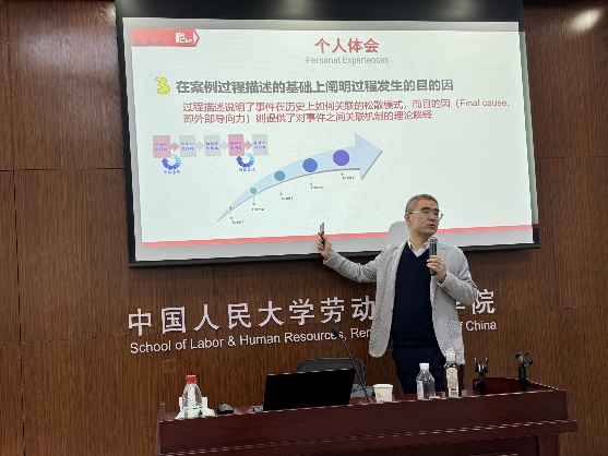 随后,井润田教授结合自身研究经历提出了案例研究的三点建议。一是重视案例研究者扮演的内部人及外部人的双重角色,研究者要通过理解进入研究对象的感受世界;二是理论不是经验总结,而是逻辑归纳,并鼓励大家学会用核心概念将所有的事件进行串联;三是在案例过程描述的基础上阐明过程发生的目的因,对事件之间的关联机制进行解释。这三点建议为案例研究的开展提供了重要的借鉴和指导。